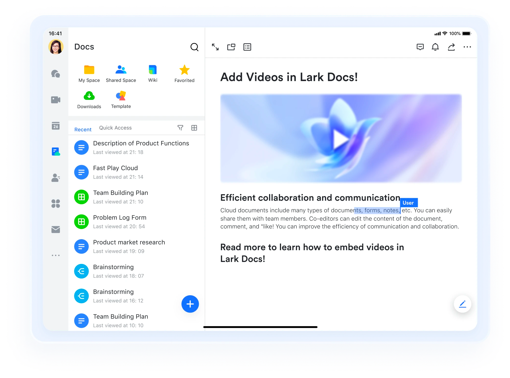 Lark is a unified collaboration suite built for the modern digital workplace. It combines core functions like instant messaging, video conferencing, calendar, and document editing.